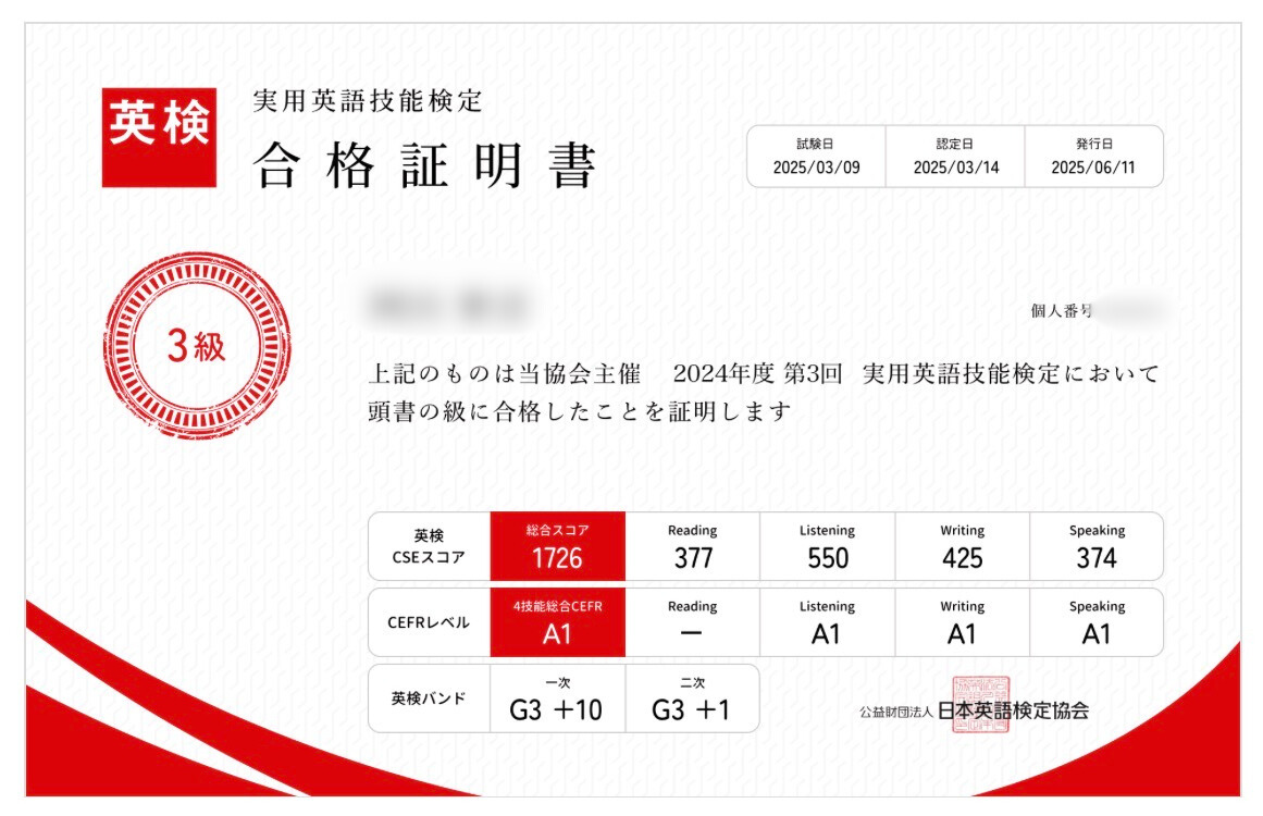 年長から英検にチャレンジし、年長の間に5級・4級・3級ととんとん拍子でクリア。